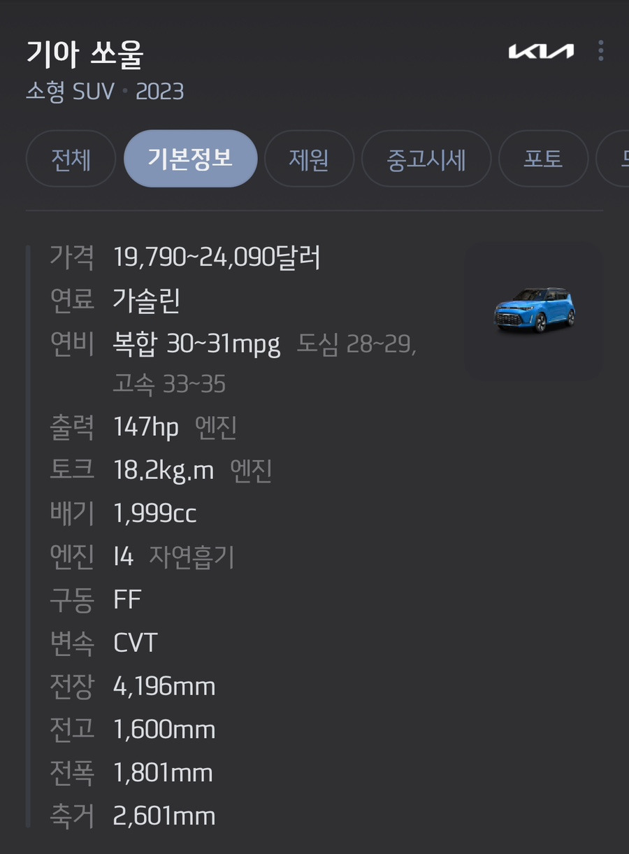 소울도 외관이 너무 예쁘고, 전폭이 넓지 않습니다.