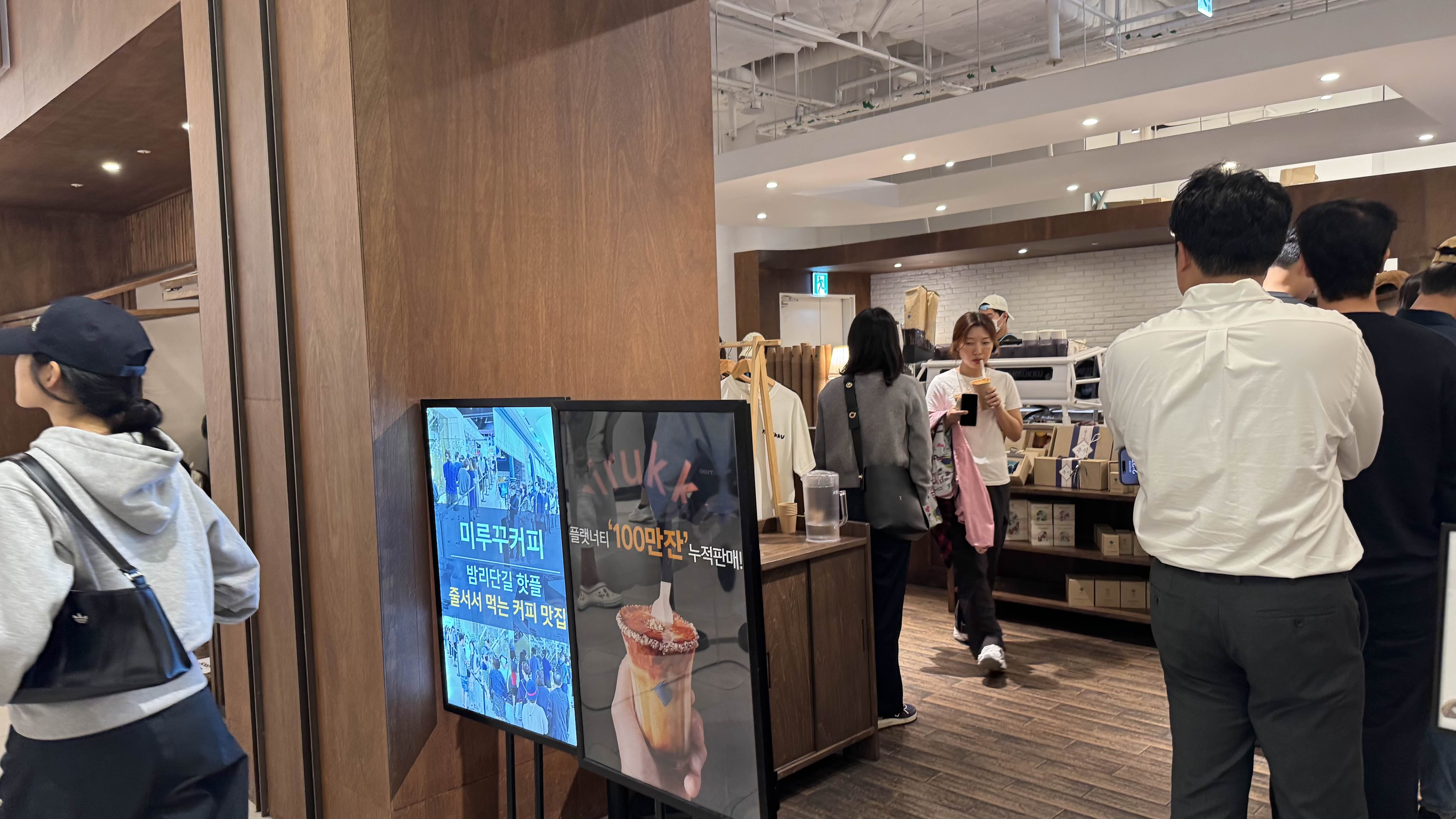 미루꾸 카페는 스타필드 수원에서 쇼핑 중 간단히 커피 한 잔 테이크아웃하기 좋은 곳이라는 인상이 강했습니다. 매장은 붐비고 자리는 부족했지만, 달달한 커피와 함께 다양한 굿즈가 준비돼 있어 브랜드 경험을 확장하기 좋았습니다.