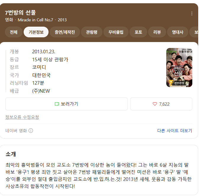 코믹하면서도 가족애를 느낄 수 있는 따뜻한 영화라 명절에 보기 좋습니다.