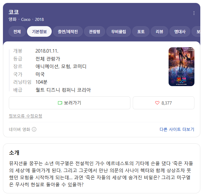 멕시코 전통 명절 '죽은 자의 날'을 배경으로 한 음악과 가족애의 이야기. 감동적인 스토리와 아름다운 음악이 어우러져 온 가족이 함께 보기 좋은 애니메이션입니다.