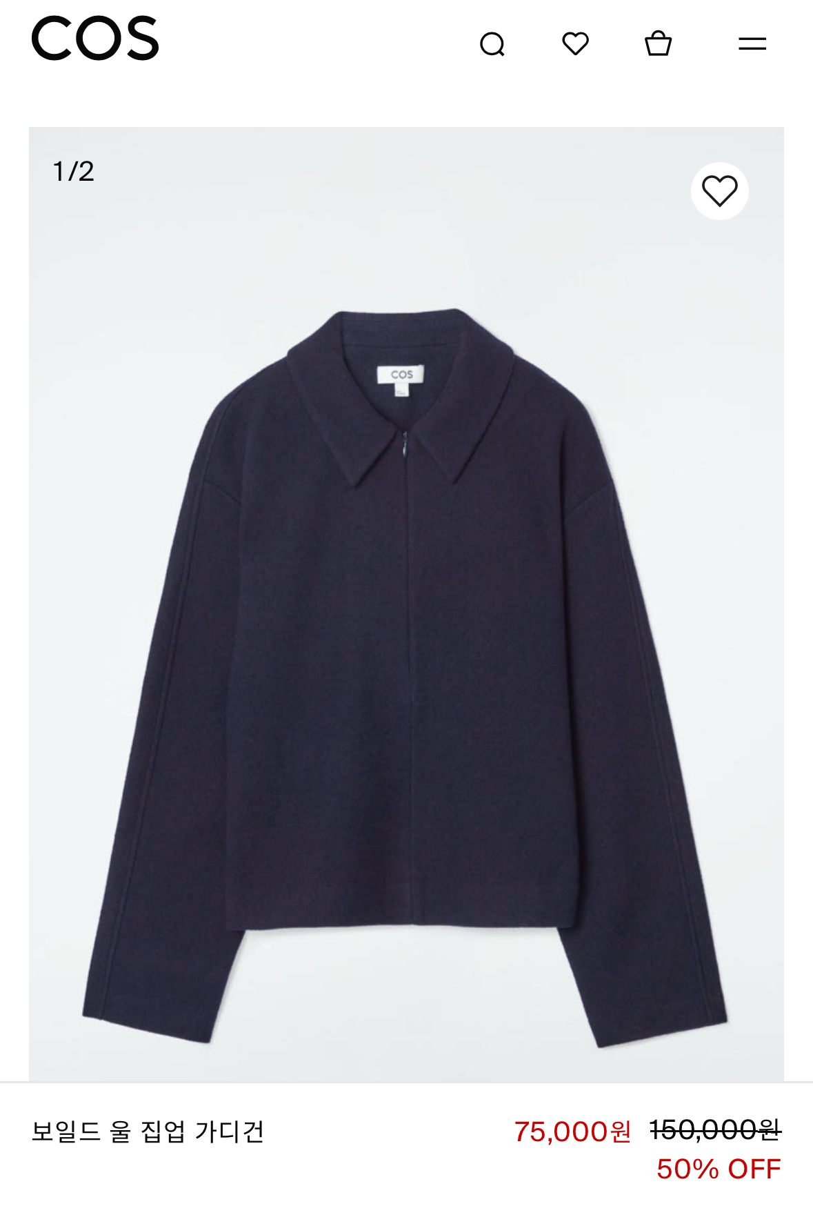 보일드 처리된 울 소재라 따뜻하면서도 부드러운 느낌이에요. 집업 디자인이라 단독으로 걸쳐 입거나 아우터 안에 레이어드하기에도 좋아요. 세일 품목 중 보온성과 스타일을 모두 잡을 수 있는 아이템입니다.