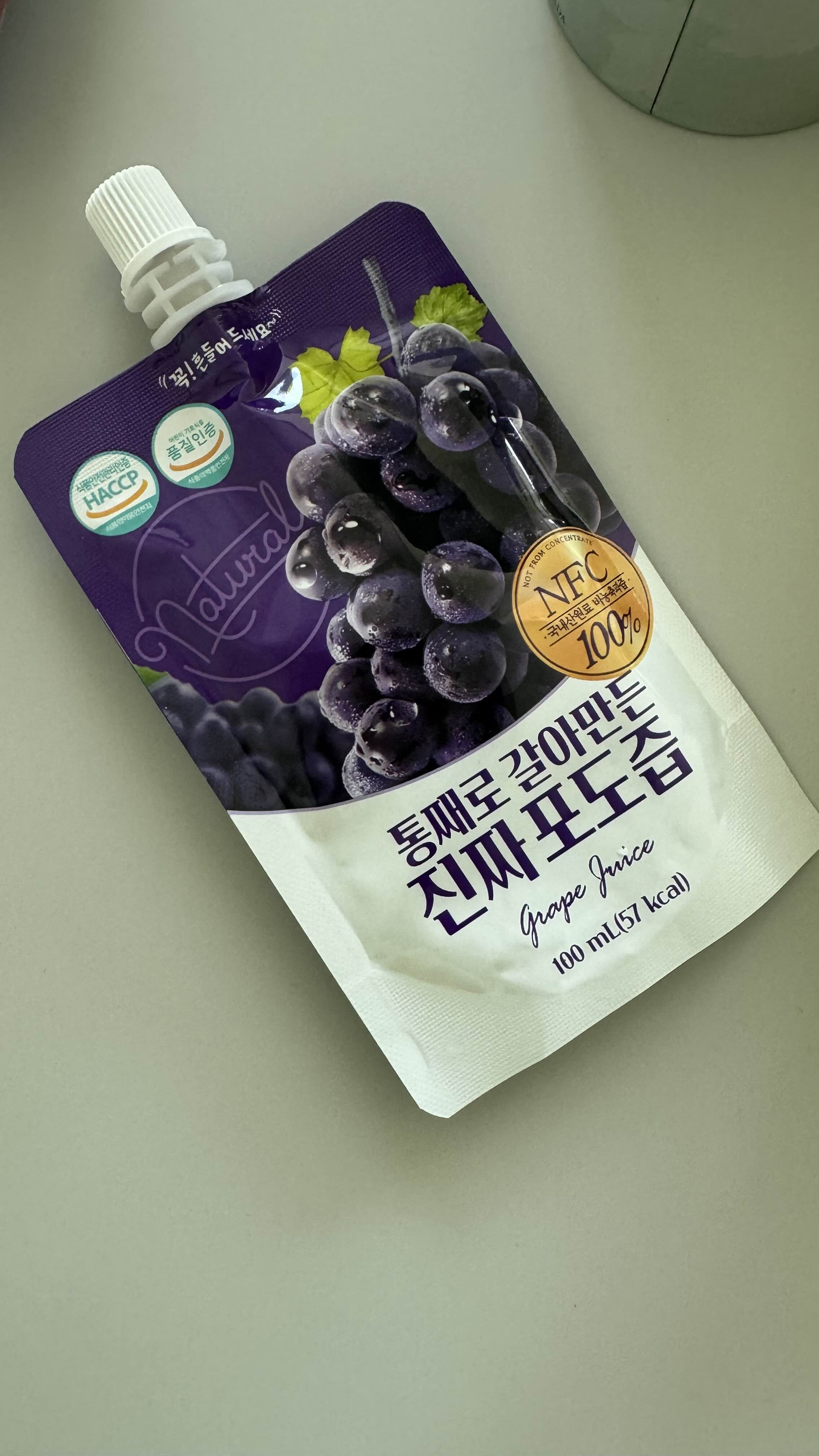 포도즙은 착상에 좋다는 후기를 많이 보고 시작했어요. 당분이 많을 수 있으니 무가당 제품을 골라서 하루 한 팩만 마십니다. 피로할 때 간식처럼 먹기에도 좋아요.